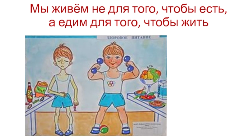 Слайд 2 Мы живём не для того, чтобы есть, а