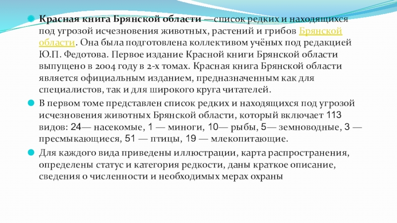 Слайд 3Красная книга Брянской области —список редких и находящихся под угрозой исчезновения