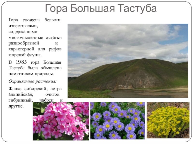 В 1985 гора Большая Тастуба была объявлена памятником природы.