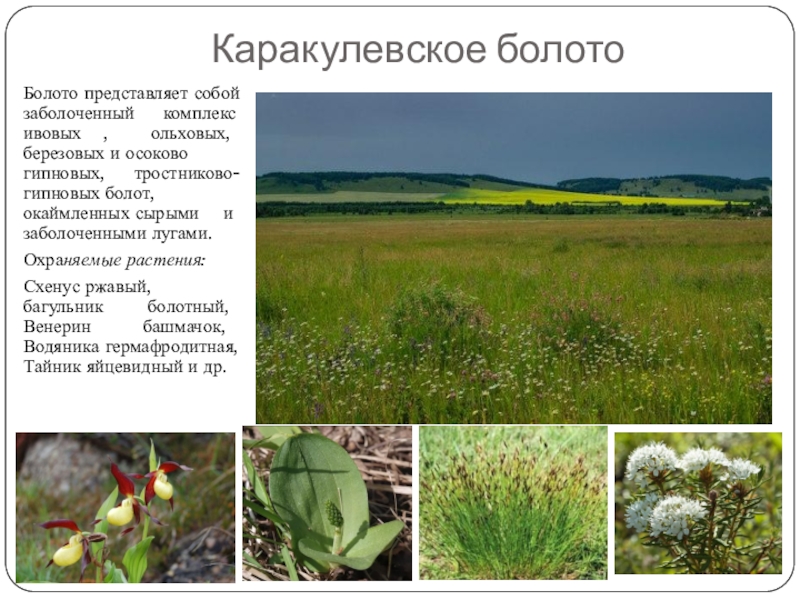 Схенус ржавый, багульник болотный, Венерин башмачок, Водяника гермафродитная, Тайник яйцевидный и др.