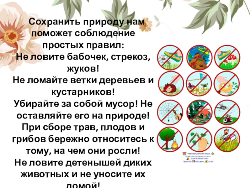 научиться соблюдать правила друзей природы;