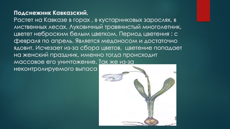 Слайд 11Подснежник Кавказский.