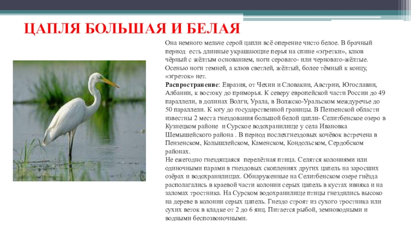 Слайд 6ЦАПЛЯ БОЛЬШАЯ И БЕЛАЯ