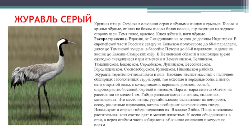Слайд 13ЖУРАВЛЬ СЕРЫЙ