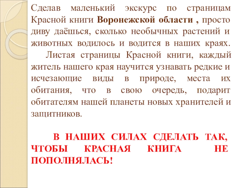 Слайд 26Сделав маленький экскурс по страницам Красной книги Воронежской области , просто