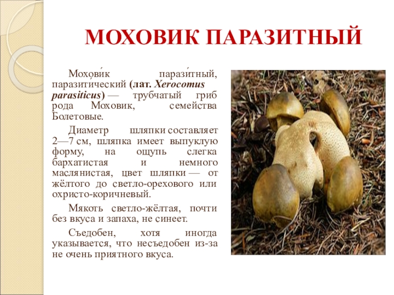 Слайд 12МОХОВИК ПАРАЗИТНЫЙ
