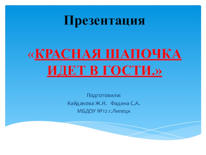 Презентация  «КРАСНАЯ ШАПОЧКА ИДЕТ В ГОСТИ.» Подготовили:Кайдакова Ж.Н.  Фадина С.А.МБДОУ №12 г.Липецк