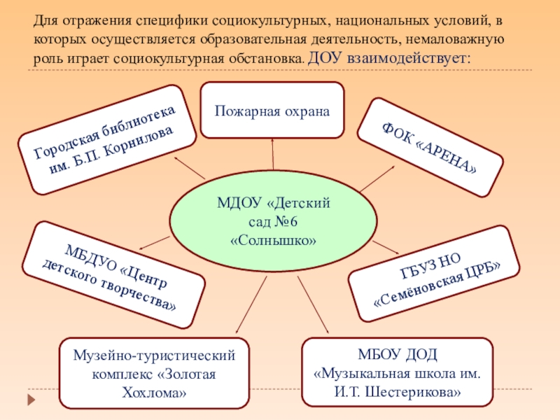 Сетевое взаимодействие с организациями социализации, образования, охраны здоровья и другими партнерами.