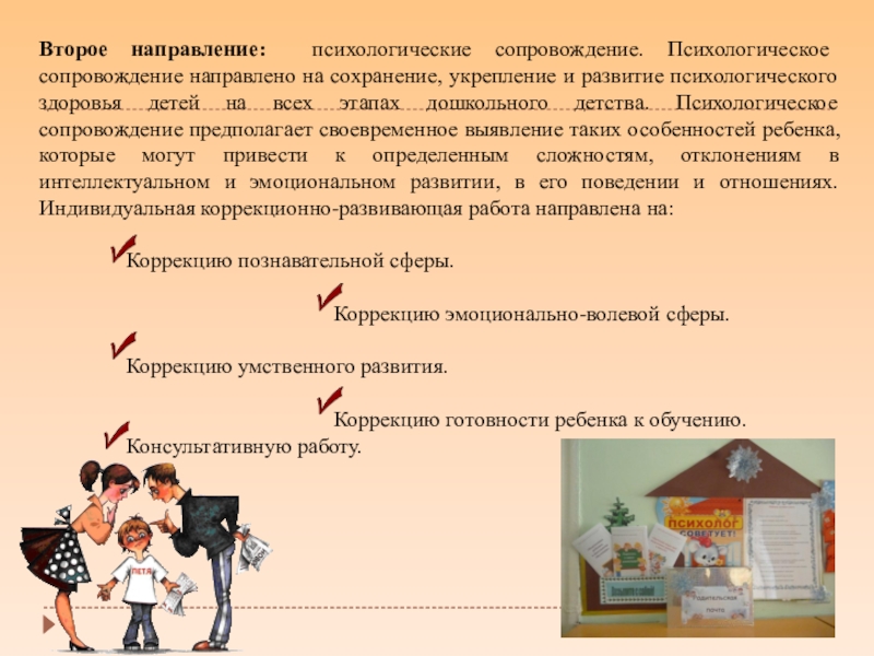 Коррекция отклонений в развитии речи. В МДОУ функционирует логопункт. Работа логопункта построена на программе, основанной на: коррекционно-развивающей программе для детей старших групп - «Программа обучения и воспитания детей с фонетико-фонематическим недоразвитием» Т.Б. Филичевой и Г.В. Чиркиной и подготовительных групп - «Программа обучения детей с недоразвитием фонематического строя речи в подготовительной к школе группе» Т.Б. Филичевой, Г.А. Каше. Целью программы логопункта является построение системы коррекционно-развивающей работы в старших и подготовительных группах, предусматривающей взаимодействие всех специалистов образовательного учреждения и родителей дошкольников.