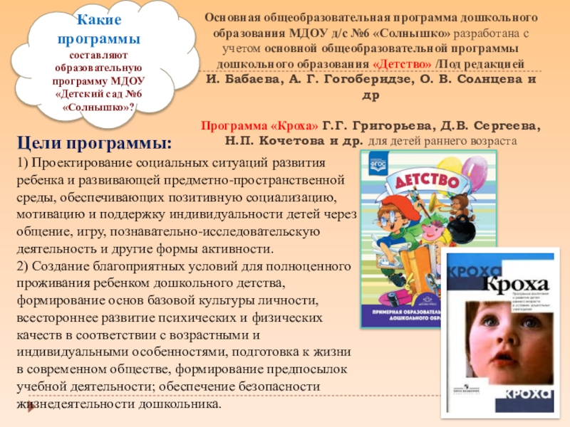 2) Создание благоприятных условий для полноценного проживания ребенком дошкольного детства, формирование основ базовой культуры личности, всестороннее развитие психических и физических качеств в соответствии с возрастными и индивидуальными особенностями, подготовка к жизни в современном обществе, формирование предпосылок учебной деятельности; обеспечение безопасности жизнедеятельности дошкольника.