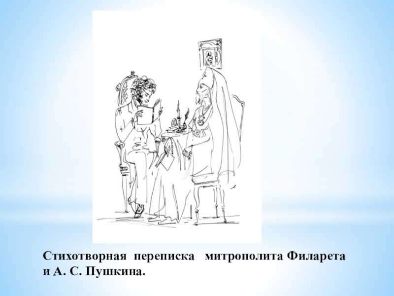Слайд 4Стихотворная переписка митрополита Филарета и А. С. Пушкина.