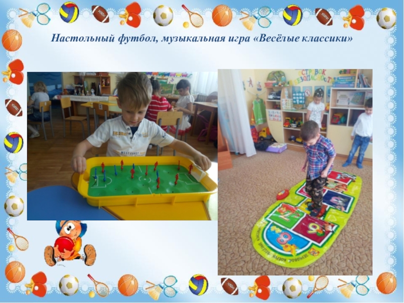 Слайд 14Настольный футбол, музыкальная игра «Весёлые классики»