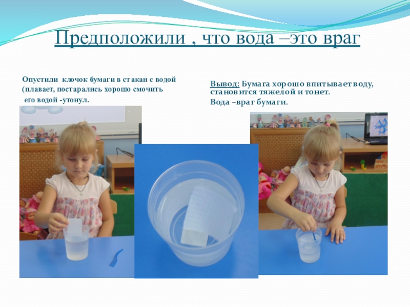 Вывод: Бумага хорошо впитывает воду, становится тяжелой и тонет.