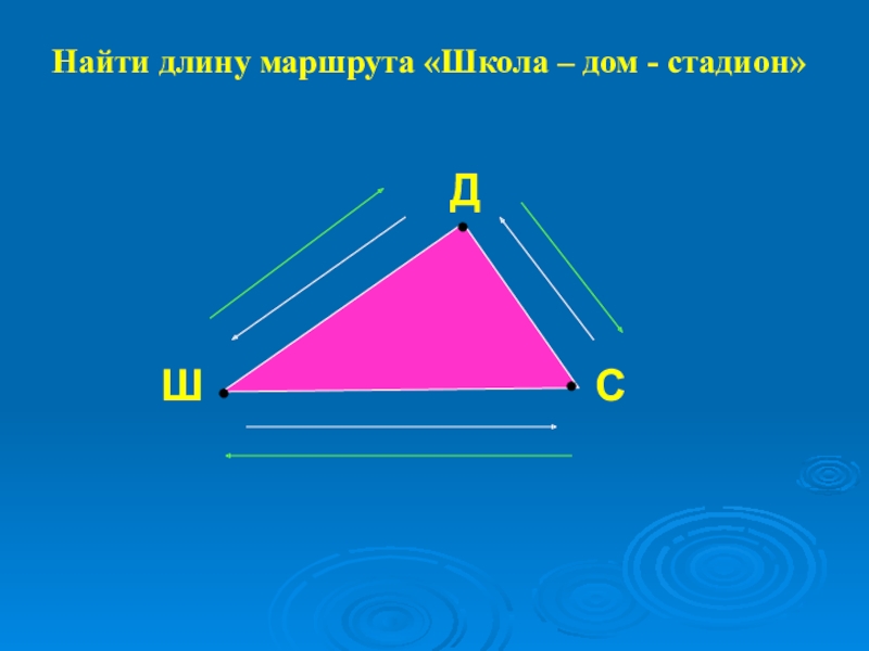 ДШСНайти длину маршрута «Школа – дом - стадион»