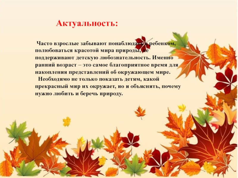 ребенком, полюбоваться красотой мира природы, не поддерживают детскую любознательность. Именно ранний возраст – это самое благоприятное время для накопления представлений об окружающем мире.
