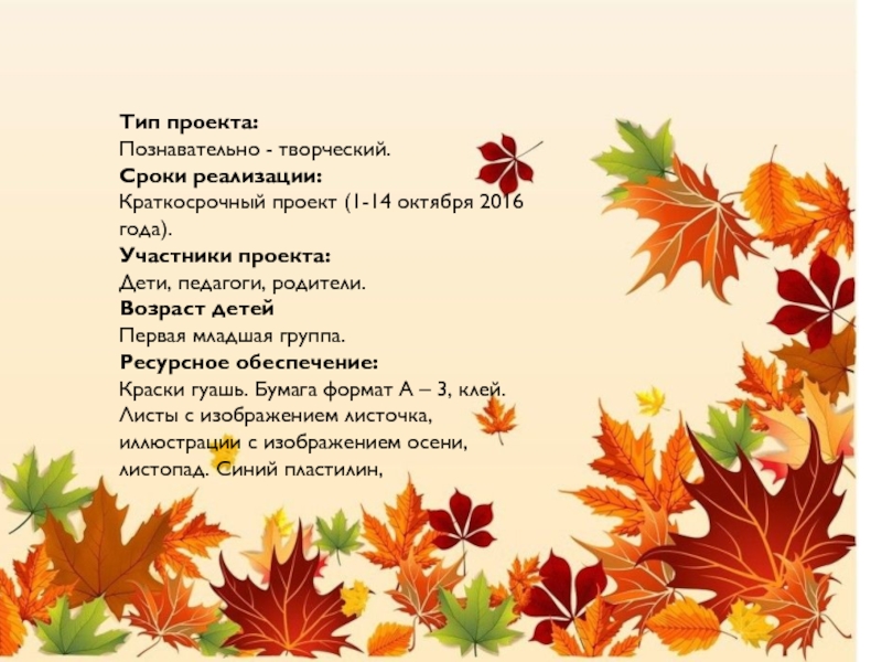 Слайд 1Краткосрочный проект «Осень золотая» в первой младшей группе
