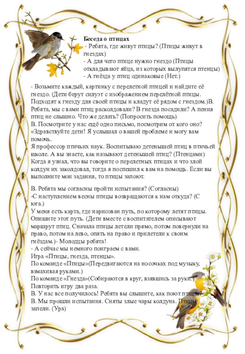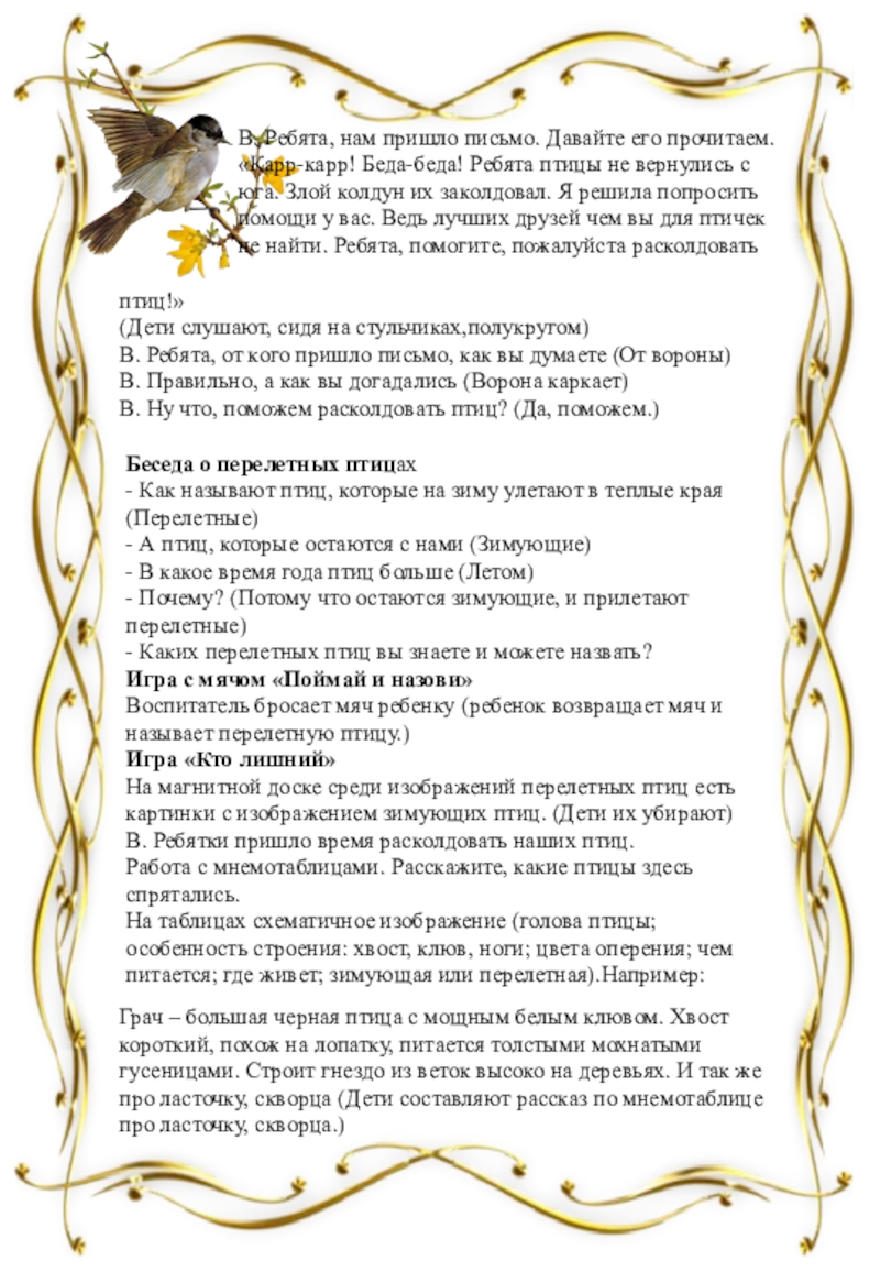 Беседа о перелетных птицах