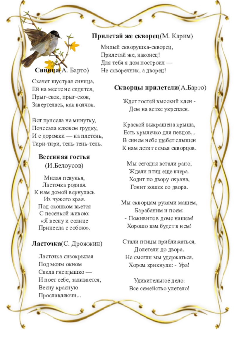 Скворцы прилетели(А.Барто)