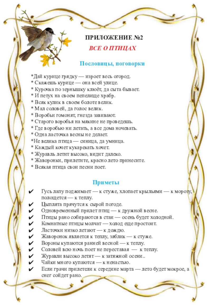 Беседа о птицах
