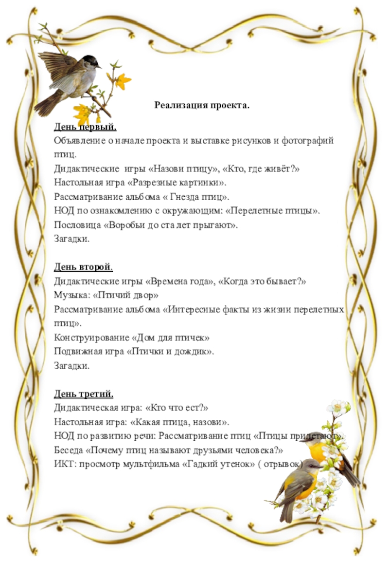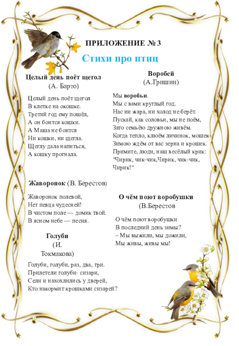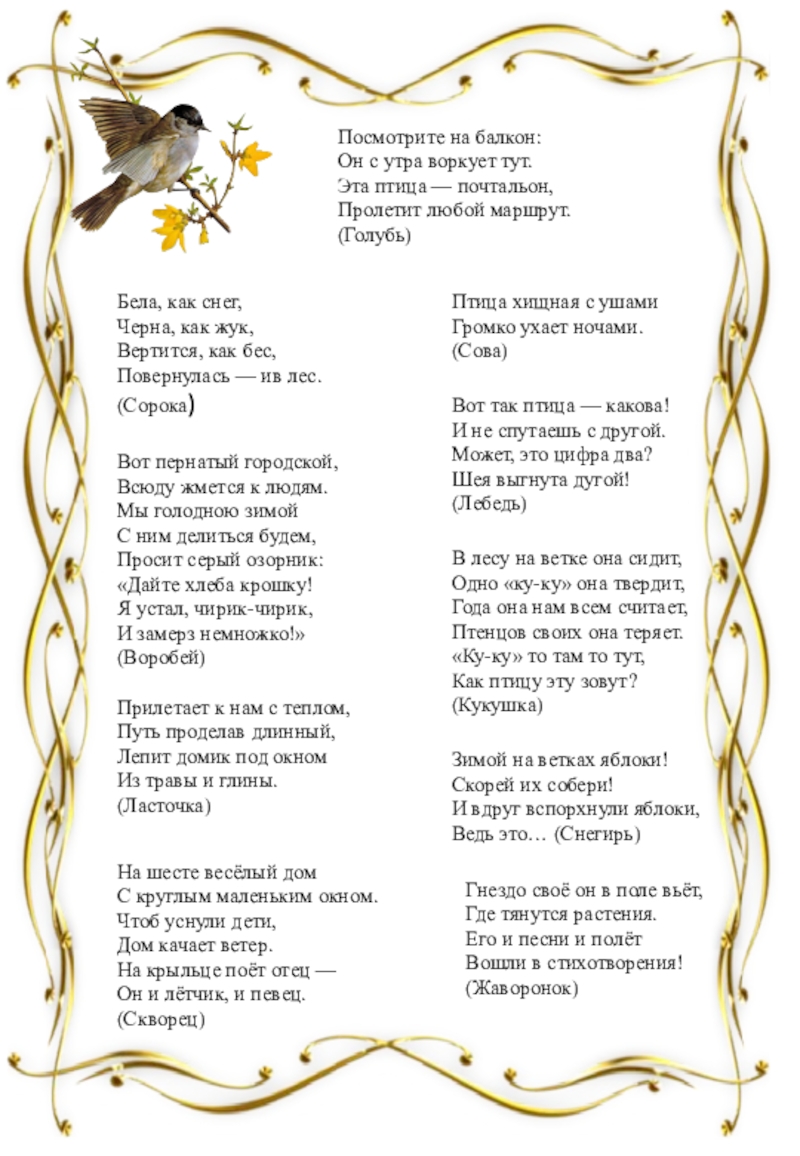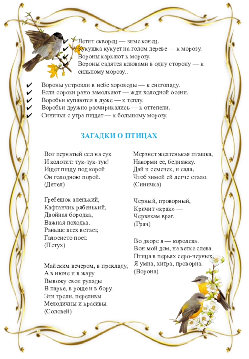 В. Ребятки пришло время расколдовать наших птиц.