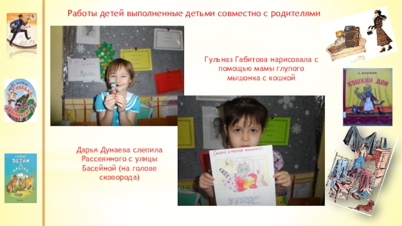 Гульназ Габитова нарисовала с помощью мамы глупого мышонка с кошкой