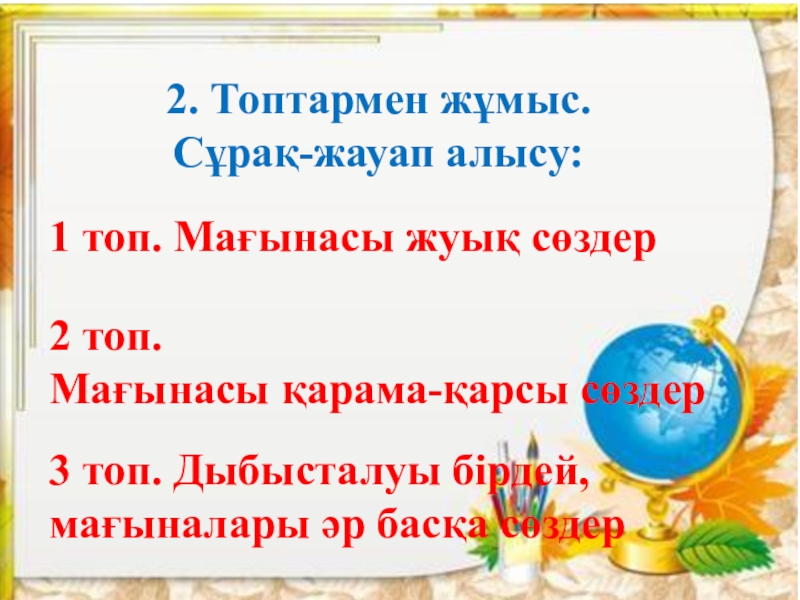 3 топ. Дыбысталуы бірдей, мағыналары әр басқа сөздер