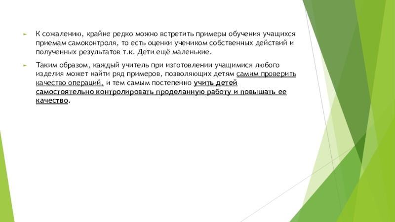 Слайд 6К сожалению, крайне редко можно встретить примеры обучения учащихся приемам самоконтроля,