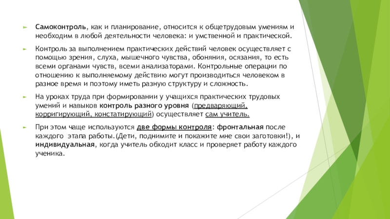 Слайд 5Самоконтроль, как и планирование, относится к общетрудовым умениям и необходим в