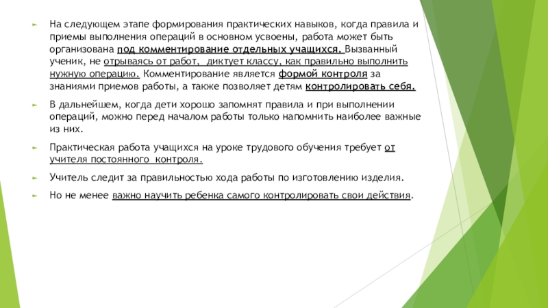 Слайд 4На следующем этапе формирования практических навыков, когда правила и приемы выполнения