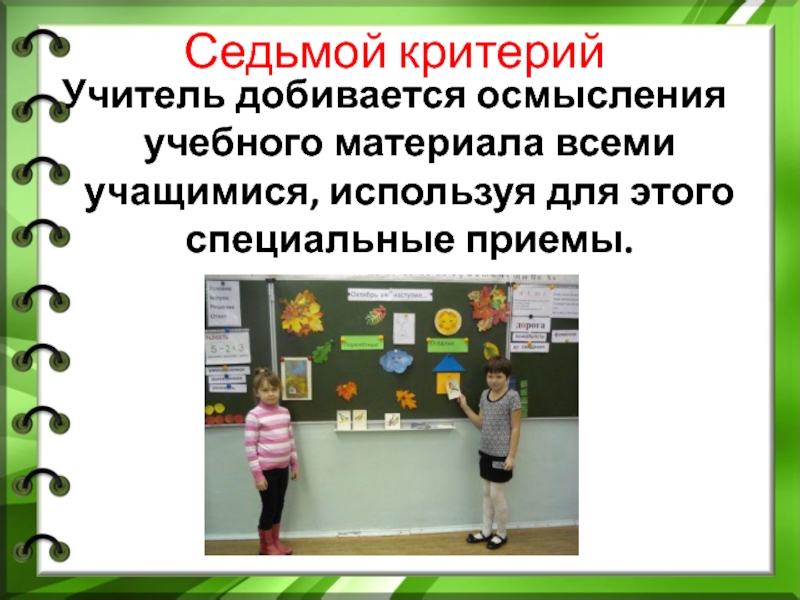 Седьмой критерийУчитель добивается осмысления учебного материала всеми учащимися, используя для этого специальные приемы.