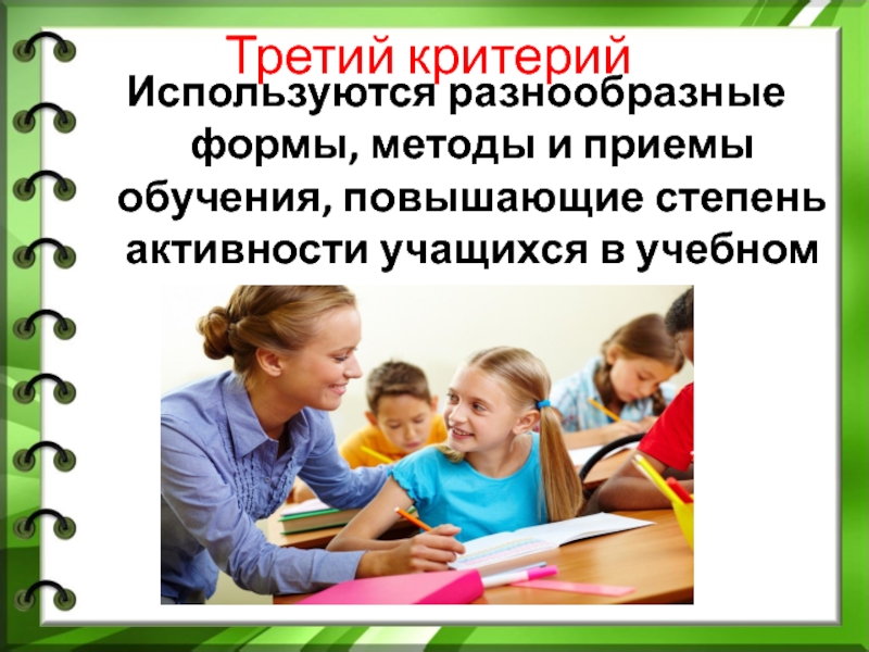 Третий критерийИспользуются разнообразные формы, методы и приемы обучения, повышающие степень активности учащихся в учебном процессе.