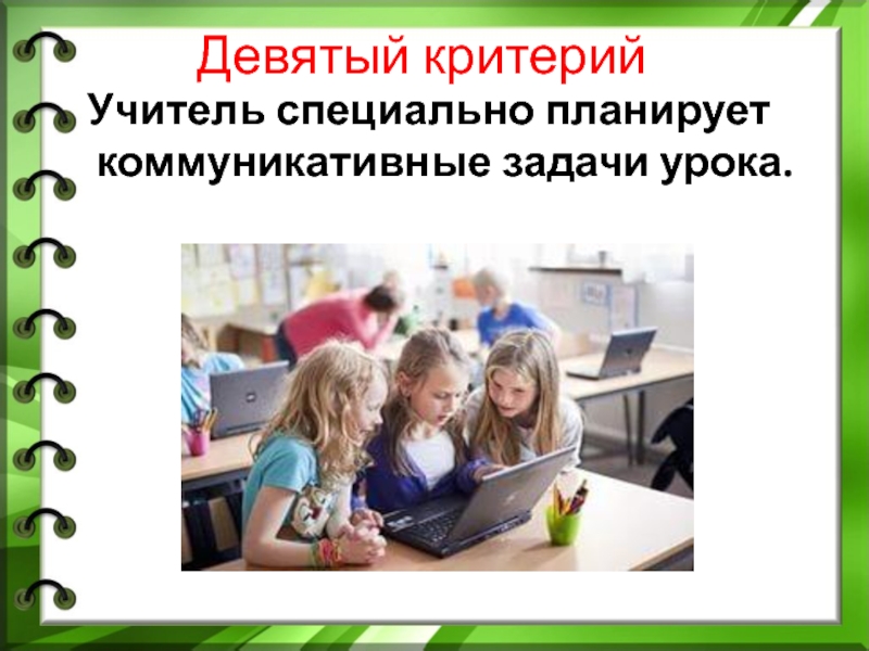 Девятый критерийУчитель специально планирует коммуникативные задачи урока.