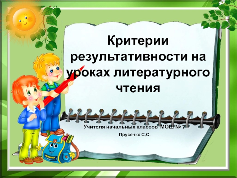 Критерии результативности на уроках литературного чтенияУчителя начальных классов МОШ № 7  Прусенко С.С.