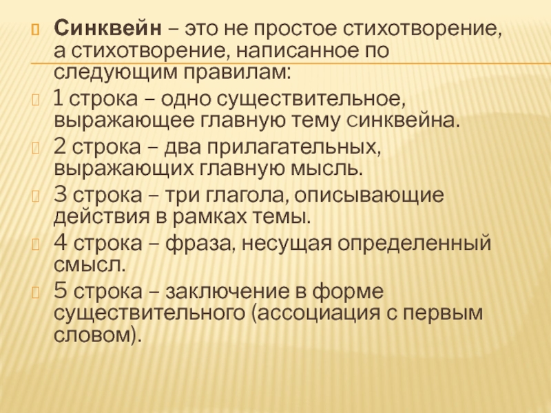 Слайд 7Синквейн – это не простое стихотворение, а стихотворение, написанное по следующим правилам: