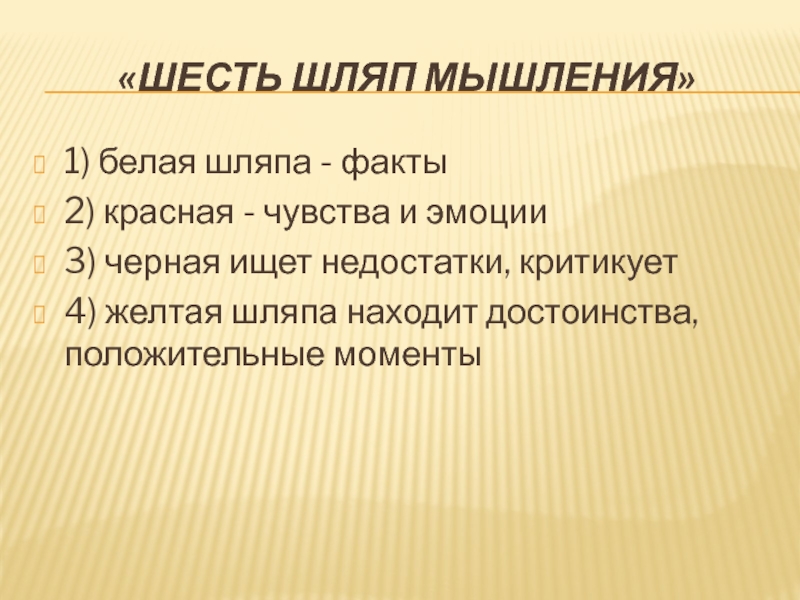 Слайд 9«Шесть шляп мышления»