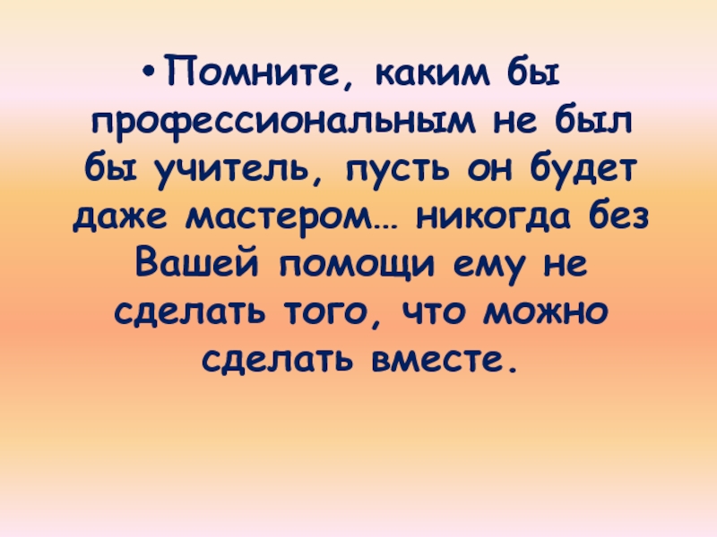 Слайд 2Помните, каким бы профессиональным не был бы учитель, пусть он будет