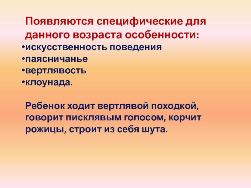 Слайд 8Появляются специфические для данного возраста особенности: