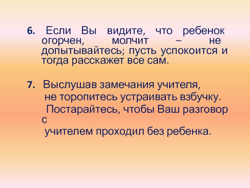 Слайд 286. Если Вы видите, что ребенок огорчен, молчит – не допытывайтесь;