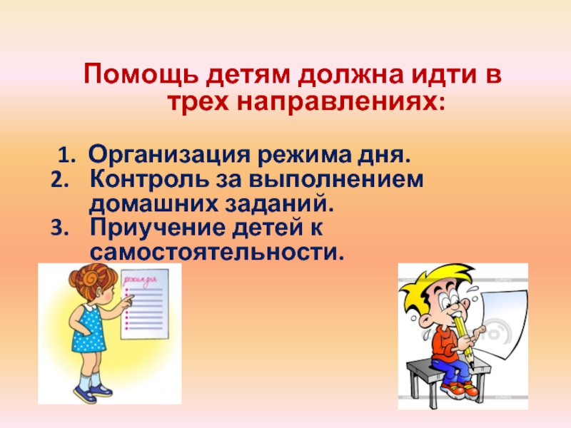 Помощь детям должна идти в трех направлениях: