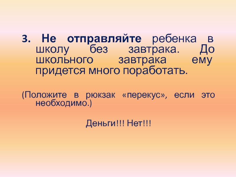 Слайд 233. Не отправляйте ребенка в школу без завтрака. До школьного завтрака