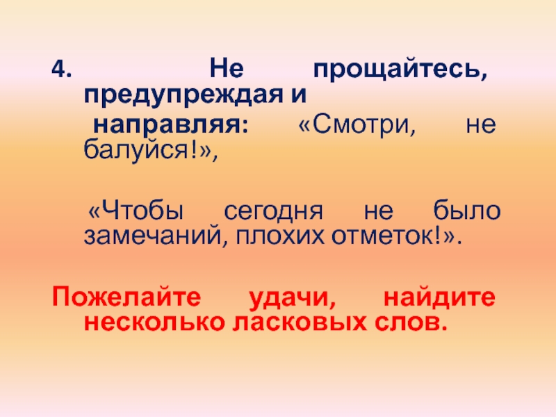Слайд 244. Не прощайтесь, предупреждая и