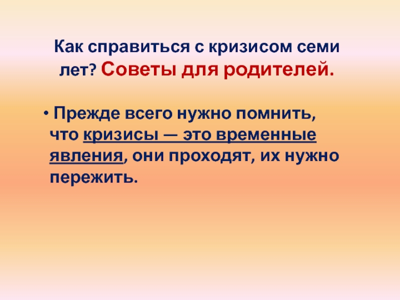 Слайд 9Как справиться с кризисом семи лет? Советы для родителей.