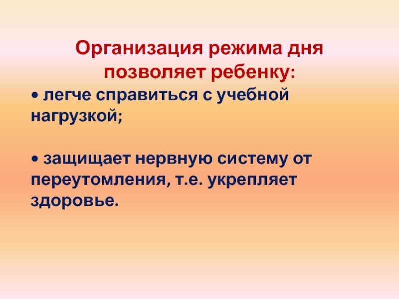 Слайд 15Организация режима дня позволяет ребенку: