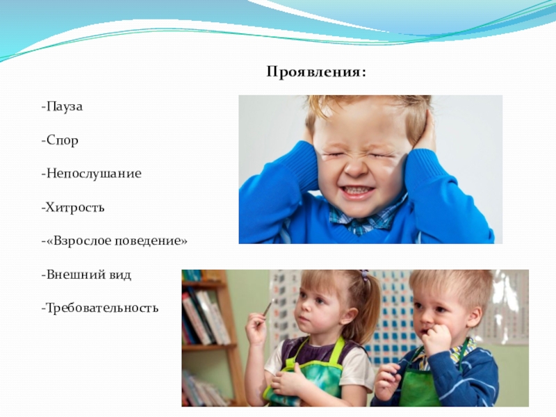 Проявления:-Пауза-Спор-Непослушание-Хитрость -«Взрослое поведение»-Внешний вид-Требовательность