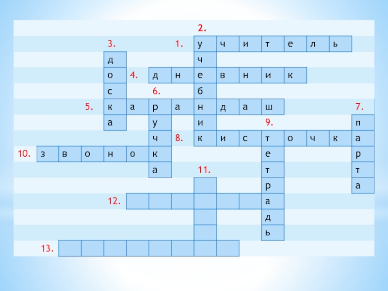 Презентация, доклад на тему Кроссворд к занятию с эементами тренинга А вот и школа!