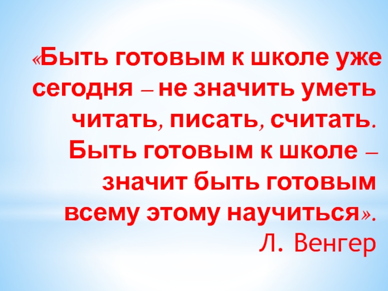 «Быть готовым к школе уже сегодня – не значить уметь читать, писать, считать. Быть готовым к школе