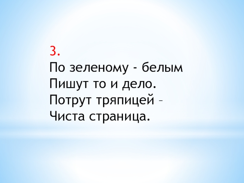 3.По зеленому - белымПишут то и дело.Потрут тряпицей –Чиста страница.