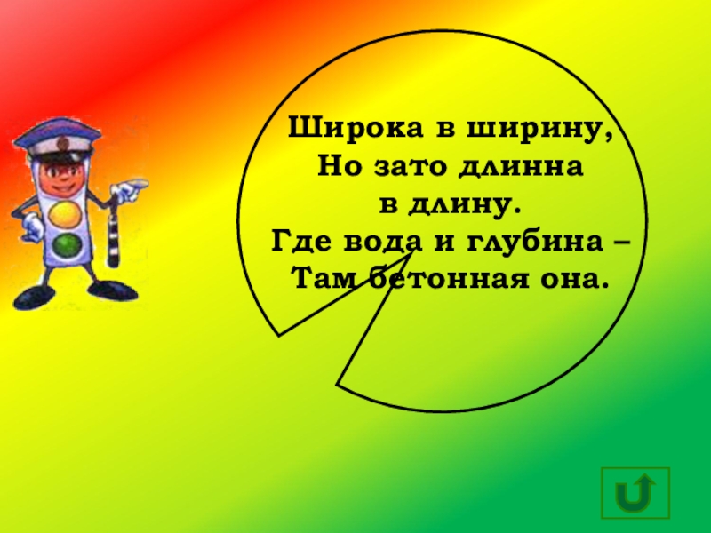 Широка в ширину,Но зато длинна в длину.Где вода и глубина –Там бетонная она.