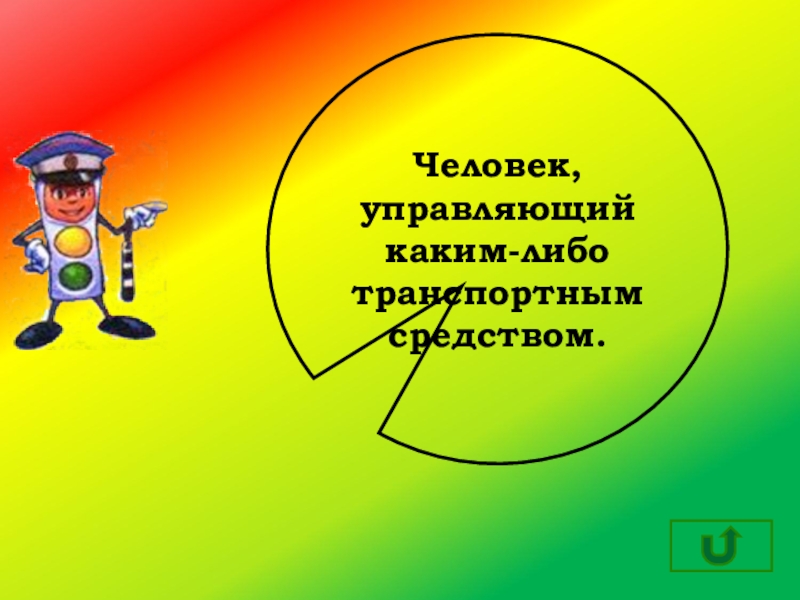 Слайд 13Человек, управляющий каким-либо транспортным средством.