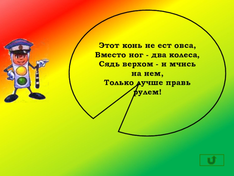 Этот конь не ест овса,Вместо ног - два колеса,Сядь верхом - и мчись на нем,Только лучше правь